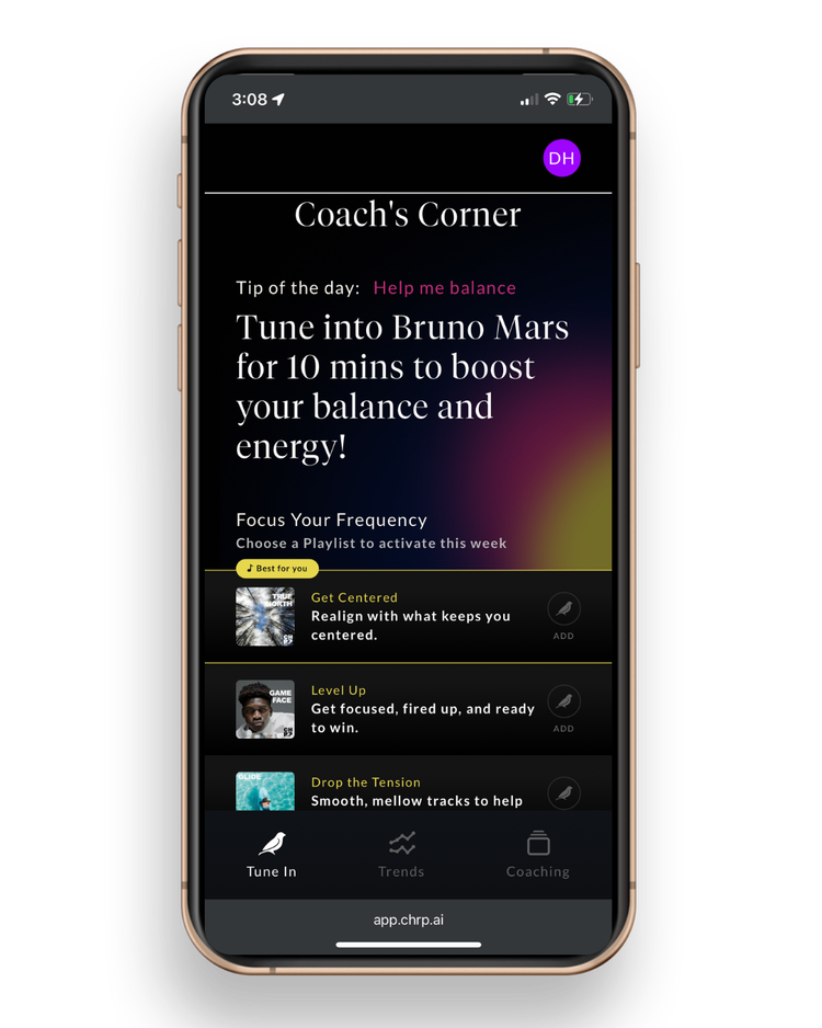CHRP has been re-launched with a stronger, more reliable experience built for you. Powered by the music you already listen to, CHRP translates your patterns into clear weekly insights on balance, stress, motivation, and more—helping you tune in, grow, and better support those you serve. Whether you’re re-registering or joining for the first time, this new chapter of CHRP is designed to guide both your personal wellbeing and your professional calling.